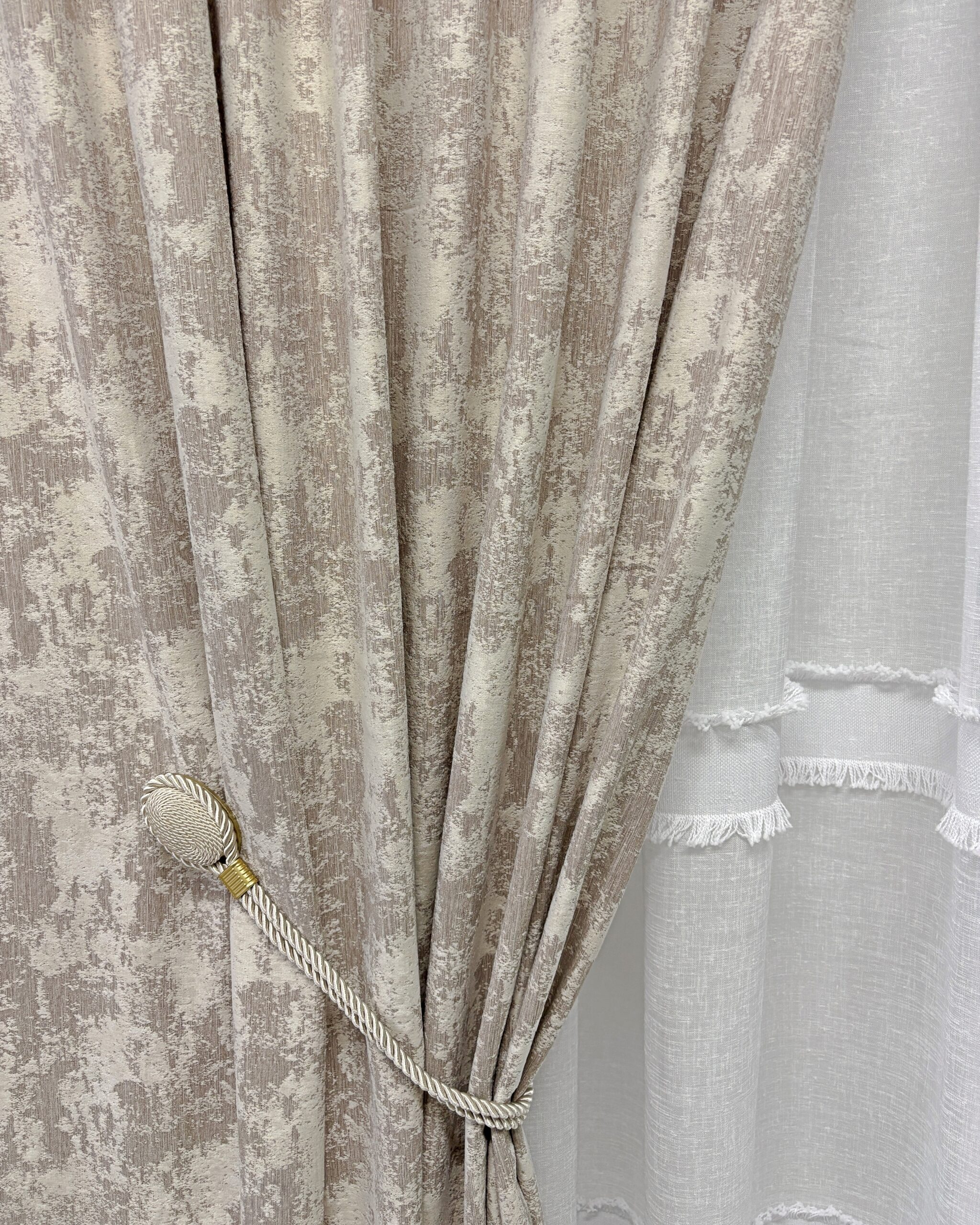 Učini svoj dom elegantnim i prijatnim uz Svetlo kapućino Sahara draperiju – tkaninu koja spaja luksuzan izgled, praktičnost i dugotrajnu lepinu.